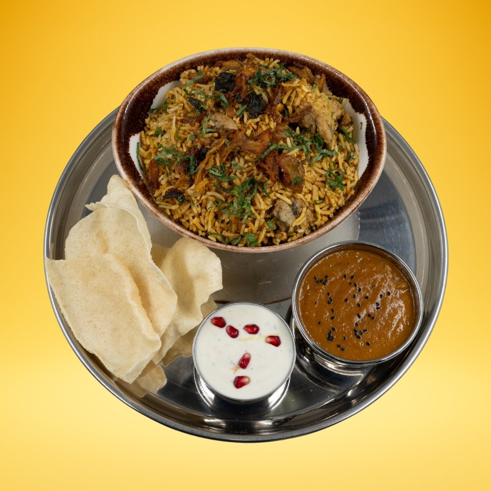 Aromatic Indian dish cooked with Chicken in Layers of fluffy Rice, Fragrant Spices.