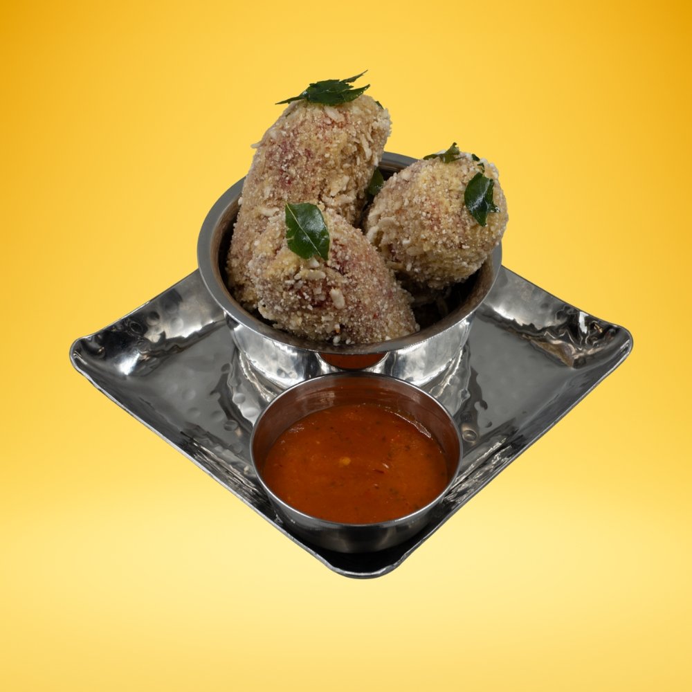 Crispy patties made by mixing Chopped vegetables with a binding of rice flakes & deep fried. Served with smoked pepper chutney.